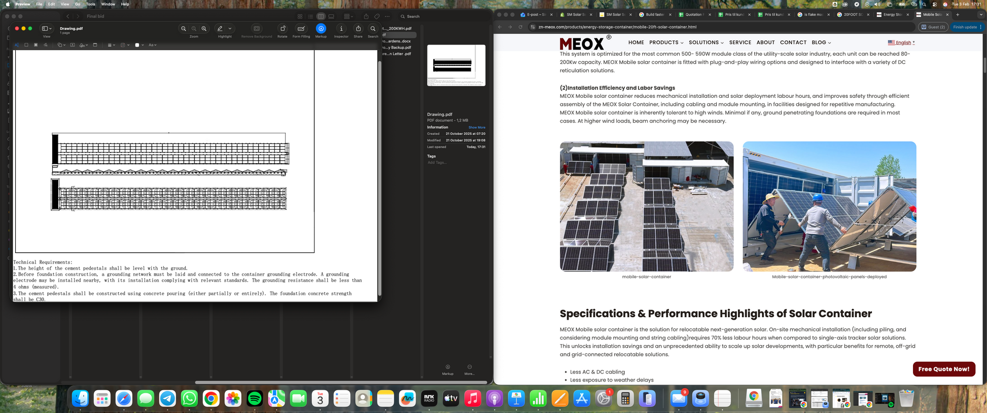 - Mounting Structure: Hot-dip galvanized steel folding bracket system, approx. 500 m², 15° tilt